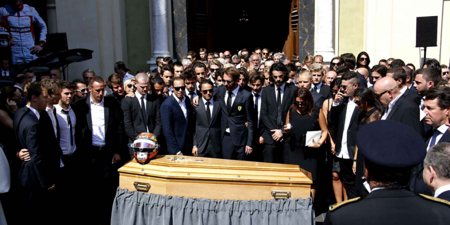Nice : Émouvant hommage rendu ce matin à Jules Bianchi, dont les obsèques se sont déroulées en la cathédrale Sainte-Réparate à Nice. Un casque de pilote posé sur un cercueil, le gotha de la F1, dont Lewis Hamilton et Alain Prost, qui ont dit adieu à Jules Bianchi. Le jeune pilote français s'est éteint vendredi soir à l'hôpital de Nice, après neuf mois de coma. Il avait été grièvement blessé lors du grand prix du Japon de Suzuka en octobre 2014. Jules Bianchi aurait eu 26 ans le 3 août, et aurait dû rejoindre l’an prochain la prestigieuse écurie Ferrari. A la fin de la cérémonie, le cercueil est sorti porté par Sebastian Vettel (que Bianchi aurait dû rejoindre au sein de la Scuderia l’an prochain), ainsi que d’autres pilotes, le Français Romain Grosjean et le Brésilien Felipe Massa. Deux grands portraits du jeune Français en combinaison de course ornaient la façade de la cathédrale. Tous les coureurs ont défilé devant le cercueil sur lequel était posé le casque du jeune homme. Parmi eux : Alain Prost, Olivier Panis, Lewis Hamilton, Nico Rosberg, Romain Grosjean, Felipe Massa, Adrien Tambay ou encore Norman Nato. Jules Bianchi a passé une partie de son enfance dans les Hautes-Alpes, à La Bâtie-Neuve. Ses parents ont tenu le karting de Rochebrune.