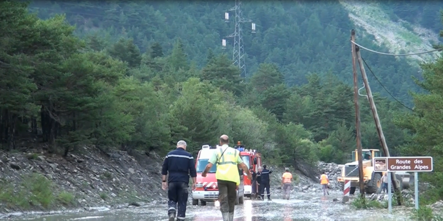 Alpes de Haute-Provence : L'ancienne RN902 entre Barcelonnette et Guillestre, coupée à la circulation à hauteur de la commune de Saint-Paul-sur-Ubaye. Le Riou Sec s'est emballé suite à des violents orages. Dès ce week-end, une dizaine de coulées de boues avaient provoqué des perturbations, dont un bus qui s'était fait bloqué par deux coulées de boue. Hier, la coulée a été massive avec 20 000 m3 de rochers et matériaux divers qui ont détruit le pont construit en 1963. Paradoxalement, c'est l'ancien pont en fer, situé à proximité, qui aurait le mieux résisté. De quoi laisser subsister l'espoir d'une exploitation sous condition, de ce pont. Reste que malgré tout, le temps de déblayer, il faudra patienter jusqu'en fin de semaine pour permettre un nouveau passage entre la Vallée et Saint-Paul. Plus de 300 touristes se sont retrouvés pris au piège, bloqués après avoir franchi le col de Vars et voulant se rendre en Ubaye. Ils ont du faire rebrousse chemin. Réactions sur place.