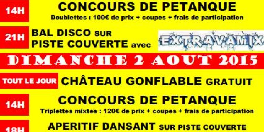 St Etienne le Laus en fête les 1er et 2 août 2015. Au programme : concours de pétanque et bal disco le samedi. Concours de pétanque, apéritif dansant, danse country et bal gratuit le dimanche.