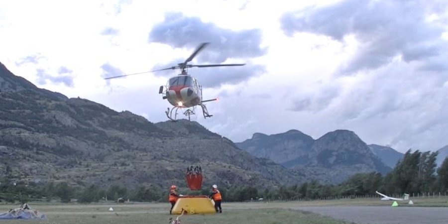C’est un exercice inhabituel pour les pompiers des Hautes-Alpes qu’avait organisé le commandant Collier, en collaboration avec la société Hélimax sur l’aérodrome de Saint-Crépin. L’objectif était de montrer aux personnels membres du commando feux de forêt les possibilités d’utilisation d’un hélicoptère pour les interventions dans des lieux difficiles d’accès. Chacun avait bien sûr déjà vu à la télévision des hélicoptères bombardiers d’eau en action, mais peu savaient que les moyens humains et techniques étaient disponibles et facilement mobilisables à Saint-Crépin.