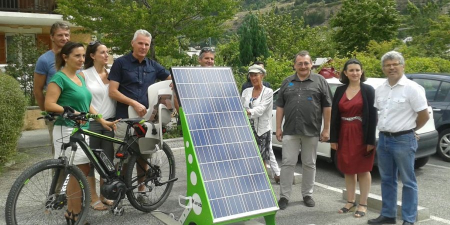 En attendant les deux bornes pour les véhicules automobiles électriques, qui devraient être implantées fin 2015/début 2016 par le Syndicat d’Électrification des Hautes-Alpes sur le territoire communal, L’Argentière s’est dotée d’une borne pour les vélos à assistance électrique, qui a été inaugurée mercredi par le député-maire Joël Giraud, la sous-préfète Isabelle Sendrané et la conseillère régionale Claire Bouchet, en présence des élus de la commune. Cette borne a été réalisée par Sundwind, de Monétier-Les Bains, qui fabrique des bornes dont les composants sont à près de 100 % français, et qui ambitionne un développement mondial à partir des Hautes-Alpes. Elle a été financée par le programme européen Leader, porté par le Pays du Grand Briançonnais. Deux vélos, mais aussi des accessoires de type tablettes, peuvent y être rechargés en simultané. L’Argentière a d’autre part fait le choix, pour la location, de privilégier les deux magasins qui offrent ces prestations, Sport 2000 et Back Country. La borne est implantée à l’entrée de la zone d’activité des Sablonnières, à proximité du rond-point de la gare, afin de constituer à cet endroit un pôle de mobilités douces.