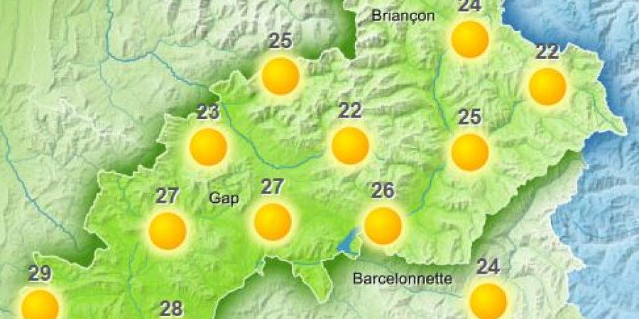 Les températures maximales repassent au dessus des normales saisonnières, elles sont proches de 25 deg à Briançon,