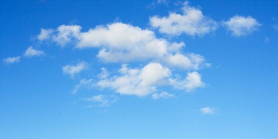 Le soleil déploie ses rayons sur fond de ciel bleu azur en matinée, et moucheté d'une poignée de cumulus rachitiques