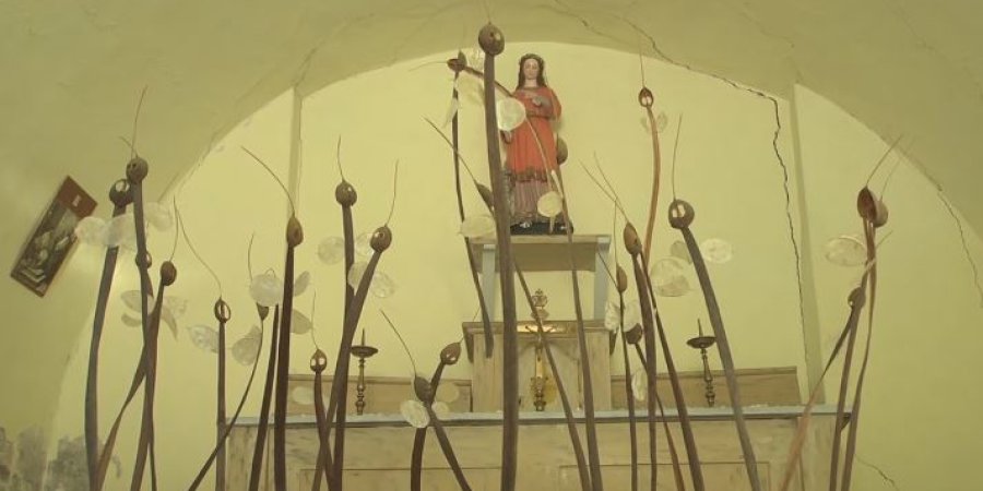 Journée du Patrimone à la Roche des Arnauds avec la visite d'une petite chapelle près du col de la Plaine. Une assemblée des fées se tient en son centre, et plus loin, sur un sentier, se trouve un arbre à pied, et une sculpture étrange. Marie-Sophie Koulischer, l'artiste qui a réalisé l'assemblée des fées:*