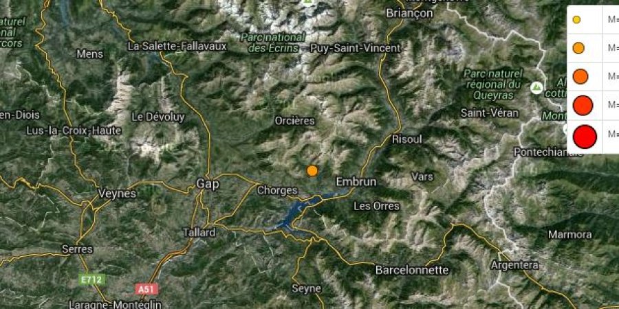 La terre a tremblé ce lundi à 14 heures 10 entre Chorges et Embrun. Le séisme, d'une magnitude de 2.1 sur l'échelle de Richter, n'a pas fait de dégâts. Mais des habitants semblent avoir entendu "un gros bruit". "C'était durant la sieste, et on a entendu une énorme vacarme dehors alors qu'il n'y avait pas un bruit". Réaction:*