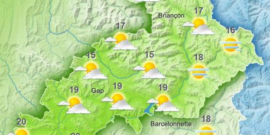 ciel est plus lumineux sur le Queyras, l'Embrunais et l'Ubaye. Le mercure continue de baisser et peine à atteidre 14/20
