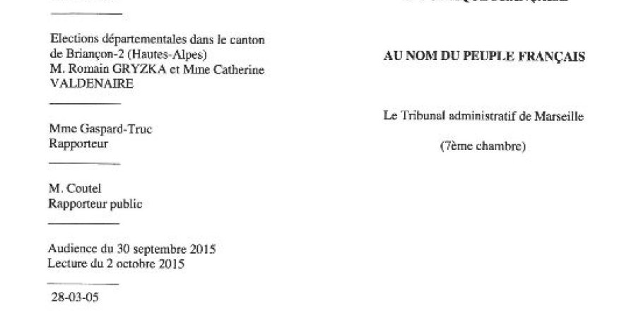 C'était un peu attendu après l'avis du rapporteur public du tribunal administratif de Marseille. Le tribunal administratif a donc décidé l'annulation des élections cantonales de Briançon 2. Le jugement a été mis en délibéré suite à une décision prise ce vendredi. A l’origine 14 signatures considérées comme non conforme et douteuses, par le tribunal.