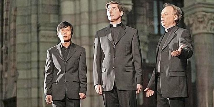 Hautes-Alpes: Monseigneur Jean-Michel di Falco Léandri annonce la sortie du best of des Prêtres chanteurs pour le 4 décembre 2015 ! Le best of s'intitule « L'essentiel ». Pour la première fois, tous leurs plus grands succès réunis sur un album, dont « L'homme en blanc » qu'ils interpréteront pour la première fois dans Vivement dimanche, chez Michel Drucker, ce dimanche 11 octobre. Un extrait de l'émission il y a un an sur le canapé rouge de Michel Drucker:*