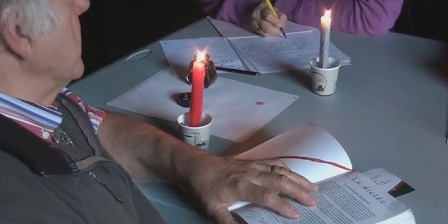 Le jour de la nuit : beaucoup de communes ont éteint leurs lumières ce samedi soir dans les Alpes du Sud. C'était le cas à Barcelonnette. L'Académie Ubayenne de dictée a organisé une dictée à la plume et, pour la circonstance, avec des chandelles. L'organisateur Jean-Marie Disset se félicite du succès de cette association qui a vu, en dix ans, 2425 participants avec 286 dictées :*