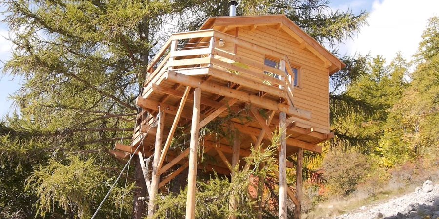 Construire une cabane dans les arbres, c'est possible , "arbres et techniques" l'a fait tout en respectant l'environnement comme à son habitude, reportage d'une construction prés de Gap
