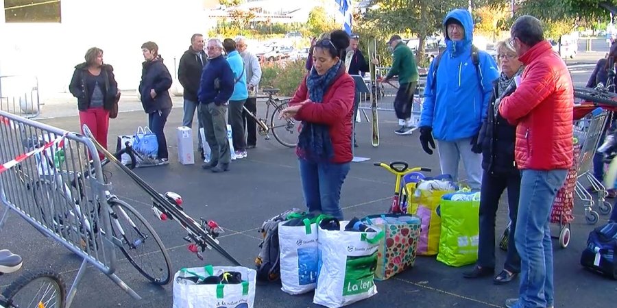 C'est parti pour une semaine de trocathlon à Gap devant le magasin Décathlon jusqu'au 24 octobre. Ce vendredi matin, les particuliers faisaient déjà la queue pour déposer leurs vieilles affaires à revendre. Beaucoup d'entre eux vendent leur équipement de skis, pour racheter, majoritairement, un vélo. Ambiances : *