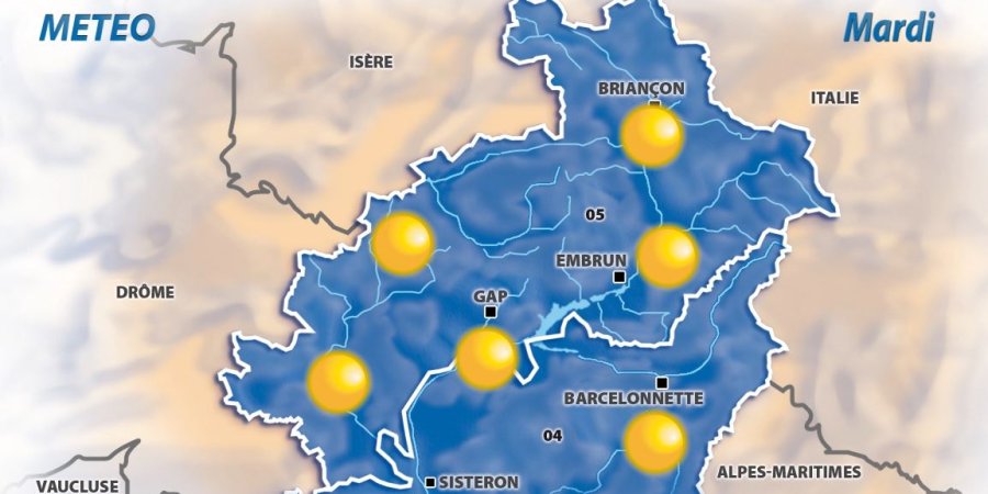 souvent 14/18 deg en vallées. Vent de nord/nord-est ayant tendance à se renforcer l'après-midi, aussi bien sur les