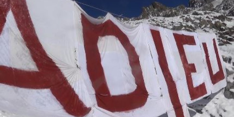A quelques jours de la Cop21, ces montagnards ont décidé de se faire entendre. Pas question de laisser la finance prendre le dessus sur le climat. Ce mardi, ils étaient 9 d'un collectif de Montagnards à monter au glacier blanc pour y installer une banderole. Dessus y était inscrit : « ADIEU ». Sous la banderole, un deuxième message, dans la neige : “Si j’étais une banque, on m’aurait déjà sauvé”. Vous le savez, le glacier blanc ne cesse de fondre. Un problème conséquent puisque dans les Hautes-Alpes et les Alpes de Haute-Provence, l'économie est grandement basée sur la neige, avec les stations de ski. Jean Ganzhorn :*