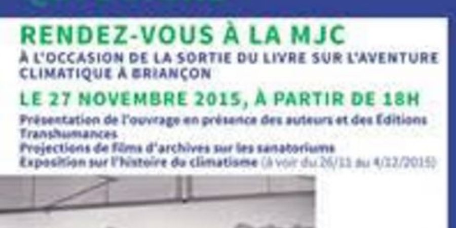 Pour poursuivre et valoriser les travaux de recherches et de collectes, et marquer le centenaire du classement de la ville en station climatique, la Ville de Briançon et la MJC organisent un évènement le 27 novembre à partir de 18h pour présenter l’ouvrage « Briançon, la montagne qui soigne » réalisé sous la direction du service du Patrimoine, par un collectif d’auteurs composé de Marc Mallen du Centre de l’Oralité Alpine, de Philippe Grandvoinnet, Architecte des bâtiments de France, de René Siestrunck des Editions Transhumances et du service du Patrimoine. A cette occasion, vous découvrirez des films d’archives sur les sanatoriums et l’exposition « Briançon, la montagne qui soigne, histoire d’un patrimoine médical » présentée du 27 novembre au 4 décembre 2015.