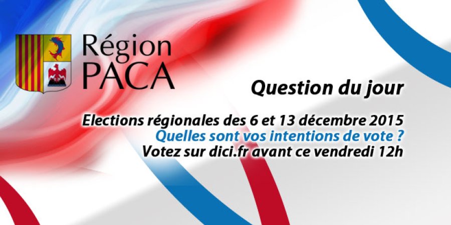 Quelles sont vos intentions de vote pour les élections régionales ? Marion Maréchal le Pen (FN) est en tête des intentions de vote avec 30% des voix. Derrière Christophe Castaner (PS) avec 27% des voix. Chistian Estrosi (LR) arrive après avec 17%. Sophie Camard (EELV) 8%, et Daniel Romani (UPR) avec 8% également. Noël Chiusano (Debout la France) et Isabelle Bonnet (Lutte Ouvrière) avec 3%. Jacques Bompard (Ligue du Sud), Jean-Marc Governatori (Alliance Ecologiste Indépendante) et Cyril Jarry (Nouvelle Donne) sont à égalité à 1% des voix.*