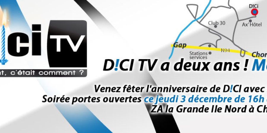 Ce vendredi à partir de 18h, venez souffler la 2ème bougie de D!CI TV et boire un vin chaud au profit du Téléthon ! D!CI vous invite nombreux à participer au Téléthon ce vendredi 4 décembre avec nos partenaires commerçants des 4 coins des Alpes du Sud ! Retrouvez nous à partir de 18h à Gap (à Diversion Place Jean Marcellin), à Embrun (place de la Mairie), à Briançon (rue Centrale) et à Barcelonnette (au Choucas, Place Manuel) pour acheter et souffler les bougies D!CI qui vous feront gagner des cadeaux. Parmi toutes ces bougies l'une vous permettra de gagner un lot d'une valeur de 150 €. Tous les profits seront intégralement reversés au Téléthon.*