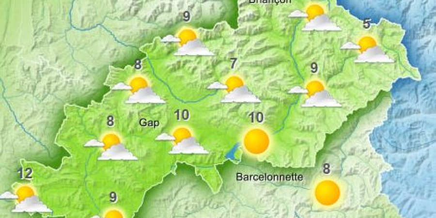 degrés en vallées. Le vent est variable faible en vallées et proche de 10/20 km/h de secteur sud-ouest puis nord-ouest