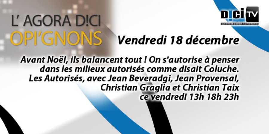 Vendredi : Opi'gnons ce vendredi 13h, 18h et 23h. Avant Noël, ils balancent tout ! On s'autorise à penser dans les milieux autorisés comme disait Coluche. Les Autorisés, ce vendredi 13h 18h 23h