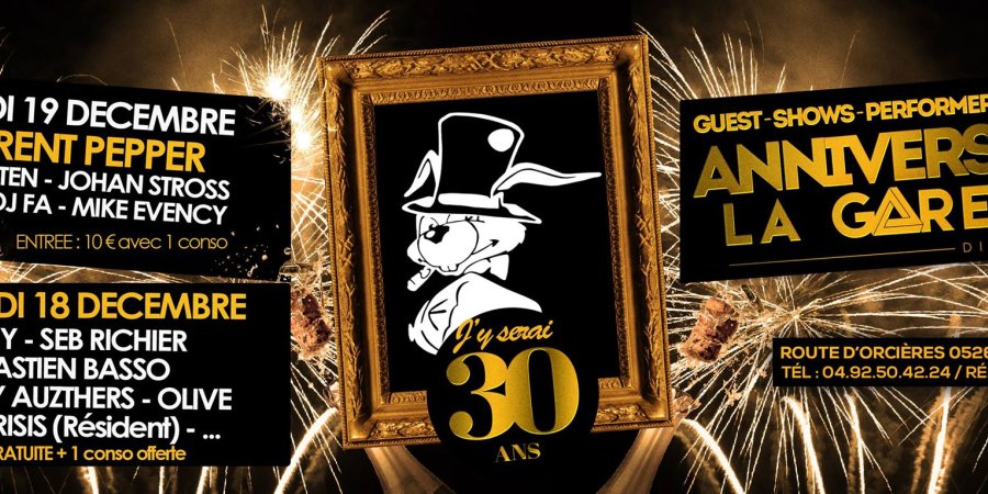 Hautes-Alpes : C'est l'événement de la nuit ce week-end : les 30 ans de la boîte de nuit du Champsaur : La Garenne. Le club, fondé par Remollo Fronte, fête ses 30 ans. Une grosse soirée est donc prévue samedi soir, avec la venue de nombreux DJ. La Garenne, repère de jeunes venus de Gap, du Champsaur et même de plus loin, entend fêter dignement ce rendez-vous.