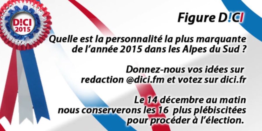 Un mot de notre concours, celui de la figure D!CI 2015. Ils ne sont plus que 4 : Sont sélectionnés avec 17% de vos votes les gendarmes et secouristes pour leur travail sur le crash de l'A320, avec 14% de vos votes, les habitants de la grave et de Villar-d'Arene confrontés aux problèmes du tunnel du Chambon. Lui aussi est sélectionné, le champsaurin, Sébastien Ogier, devenu triple champion du monde des rallye WRC en 2015. Et puis vous avez aussi sélectionné l'équipe de D!CI TV qui grâce à vous a créée la télévision locale la plus regardée en France :