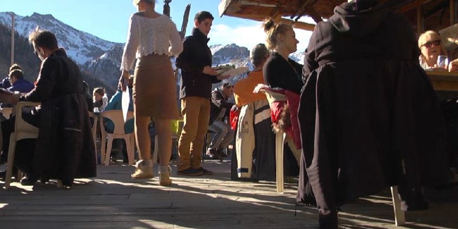 Il y avait du monde aux terrasses des restaurants pour le déjeuner ce dimanche dans la station village de Saint-Véran dans le Queyras. Le village a beau être le plus haut village d'Europe, il n'y a pas pour autant plus de neige ici qu'ailleurs dans les Alpes du Sud. Et pourtant, les touristes ont répondu présents et sont en nombre dans le village. Jean Jadin est un touriste belge. Il connaît déjà Saint-Véran pour y avoir séjourné en été. Cependant c'est la première fois qu'il y vient pendant l'hiver.