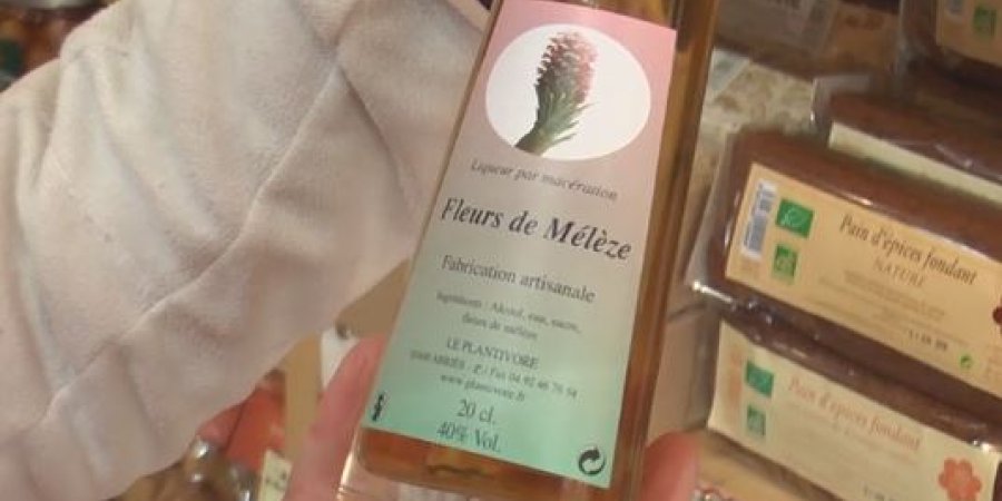 Les Hautes-Alpes sont connue pour leur station de ski, mais aussi pour leur foret de mélèzes. Un artisan du Queyras en fait même de la liqueur, avec ses fleurs. A la Soupière de Villeneuve, Odile la propose aux clients, qui n'en reviennent pas :