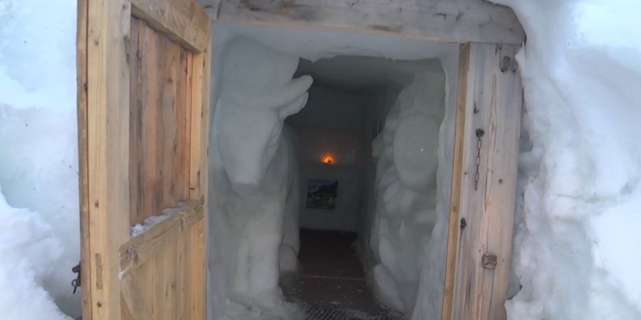 Direction l'Igloo Pelvoo à Pelvoux. Il se visite gratuitement, tous les après-midis, de 14 h à 19 h. A l'intérieur, on y découvre des sculptures de glace. Son auteur est Christian Burger. Il nous explique comment il procède pour créer ces sculptures éphémères.
