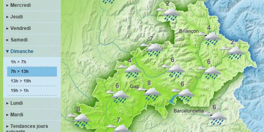 Alpes du Sud : De la neige à partir de 1 200 mètres d'altitude dès dimanche. Les prévisions de Météo France laissent entrevoir cette nouvelle perspective de neige avec l'arrivée d'une perturbation qui va agiter le ciel des Alpes dès dimanche et pendant le début de la semaine prochaine. Dimanche et lundi seront les jours les plus agités avec du vent d'ouest et des chutes, essentiellement concentrées sur les massifs frontaliers avec l'Isère et la Savoie. Ce sera beaucoup plus léger pour l'Ubaye ou une partie du Queyras. Les prévisions d'Yves Clémenceau, de Météo France Briançon.*