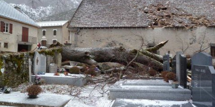 Le vent a causé de gros dégâts dans la commune de Saint-Maurice en Valgaudemar. Une énorme branche du tilleul tricentenaire "Sully", classé Monument Historique, a cassé. L'Église de la commune, et surtout le cimetière, ont été sérieusement endommagés. "Environ 50 mètres carrés de toiture sont à refaire et de nombreuses sépultures sont cassées" regrette le maire de Saint-Maurice en Valgaudemar, Daniel Alluis. L'expert est passé ce mercredi et le nettoyage va commencer dès jeudi. L'arbre, qui est en emblème de la Vallée, devra aussi subir une coupe. Écoutez le maire de la commune:*