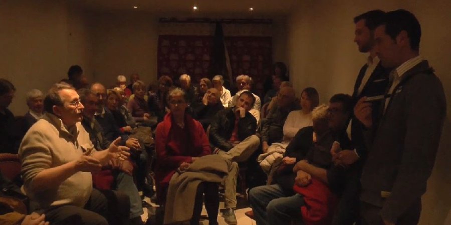 Réunion, ce lundi soir, dans la salle annexe du café du lycée à Gap, pour le mouvement « Debout la Gauche ». Au programme, discutions et échanges, dans la bonne humeur, avec les quelques 70 personnes qui se sont rendues sur place. Parmi eux, le député Joël Giraud, le maire de la Bâtie-Neuve, Joël Bonnaffoux, mais également l'ancien président du Conseil Général, Auguste Truphème. Réunion présidée par Vincent Faubert et Christophe Pierrel :