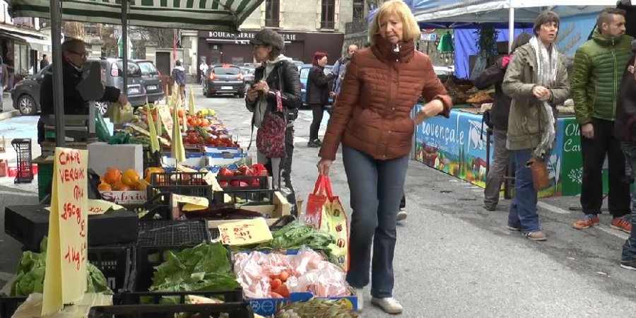 Ambiance pluvieuse ce mercredi matin sur le marché de Briançon. Ce qui n'a pas empêché la bonne humeur de se propager. Fruits, légumes, fleurs, poulet rôti... Ambiance sur le marché de Briançon :