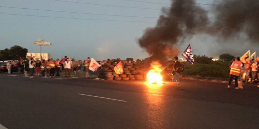 Dépôt Pétrolier de #FossurMer bloqué ! On lâche rien #raffineries #loitravailnonmerci #LoiTravail @CNPCF pic.twitter.com/CRn85GEGTT