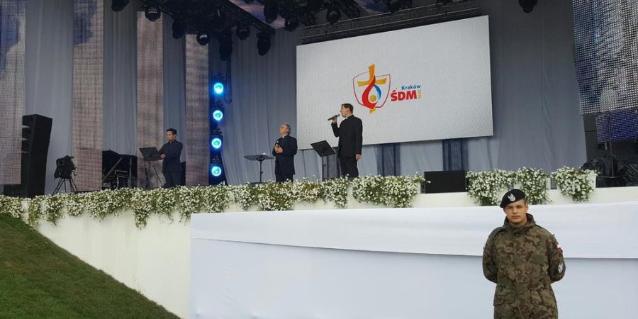 Le rassemblement des jeunes chrétiens du monde s'est fait sous une surveillance impressionnante et même le concert comme on le voit sur cette photo!