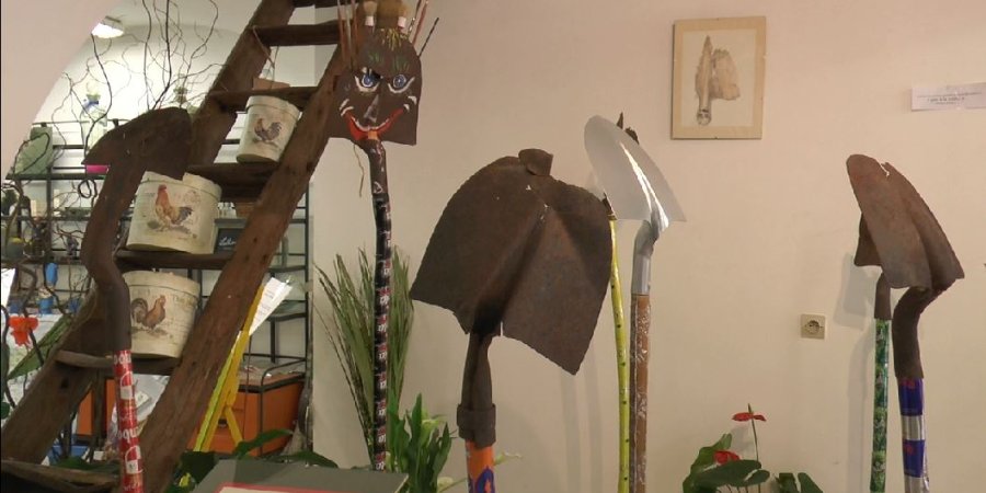 Veynes : Rendez vous avec un étonnant Veynois qui a créé une exposition dédiées... Aux pelles! En effet, ce dernier a rassemblé de nombreuses pelles trouvées lors de ses pérégrinations en montagne afin de les mettre en scène et de raconter une histoire. L'explication de cette histoire se trouve dans les écrits et tableaux qui entourent les oeuvres exposées. Toutes sortes de pelles seront ainsi mises à l'honneur du mardi au dimanche durant tout le mois d'août au magasin Grandiflor à Veynes.