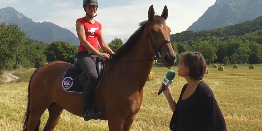 Rencontre avec Amandine et Rox à Chauffayer dans le Champsaur en plein milieu d'un champ de bottes de paille. Elle s’entraîne beaucoup avec son cheval pour des compétition. C'est pourquoi elle vient souvent le balader, et lui donner quelques vacances à Chauffayer. Rencontre