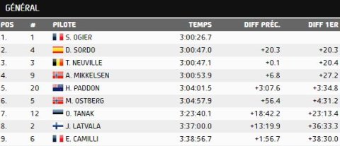 Sébastien Ogier a remporté le Rallye d'Allemagne ce dimanche ! Un rallye maîtrisé de bout en bout pour le Champsaurin triple champion du monde en titre. Cela faisait plusieurs mois qu'il n'avait plus remporté de manche des Championnats du monde de Rallye, depuis la Suède en février dernier, et avant cela, le Rallye Monte-Carlo. Il a fini 3e à la Power Stage, soit 1 point bonus au classement général. Il devance Dani Sordo et Thierry Neuville. Sébastien Ogier conforte logiquement son avance au classement général, avec 169 points, devant Mikkelsen avec 110 points, et Paddon à 94 points. Ogier a donc 59 points d'avance sur son dauphin.