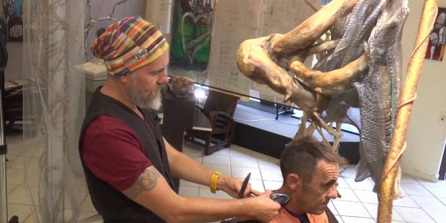 Étonnant à Gap ! Si vous souhaitez admirer les pièces d'une exposition de peinture tout en faisant votre brushing, au beau milieu d'un concert de flûte japonaise, « Terre d'argile » est fait pour vous. Plus qu'un commerce, une façon de voir la vie, celle de son créateur, installé depuis une dizaine d'années dans la rue du colonel Roux, à Gap. Alexandre Borronero :