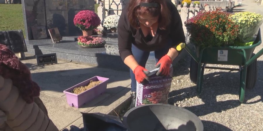 Tout doit être prêt pour le jour de la Toussaint ! Le cimetière de Fontreyne à Gap est déjà fleuri avant la fête de tous les Saints ce mardi. Les Gapençais sont venus nombreux ce dimanche entretenir la dernière demeure de leurs proches. C'est le cas de Lydie venue avec sa brouette chargée de chrysanthèmes pour prendre soin de la tombe du père de son époux :