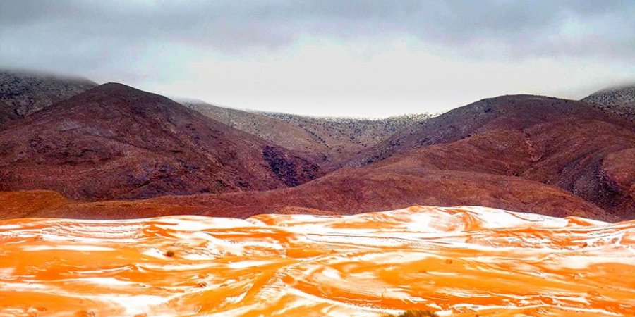 C'est assez incroyable, alors que la neige est attendue sur nos massifs, elle est tombée dans le désert du Sahara. Ce sont des photos de Karim Bouchetata publiées sur sa page Facebook. Il n'a pas neigé depuis 37 ans dans le désert, depuis le 18 février 1979. Des images impressionnantes. Et c'est pendant plus d'une demi-heure que la neige est tombée. A noter qu'à Alep en Syrie, de la neige est également tombée dans la ville.