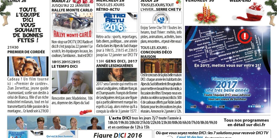 A ne pas manquer cette semaine sur D!CI du 26/12/16 au 01/01/2017