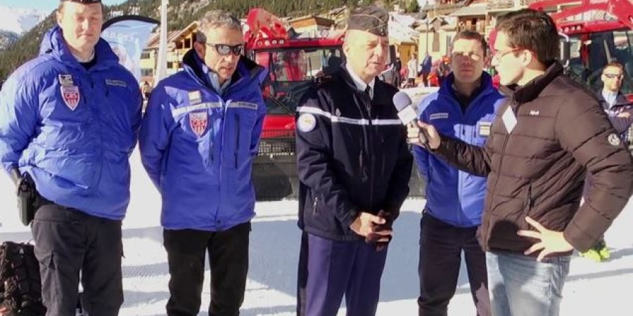 Le Général David Galtier au contact de ses hommes. Celui qui commande tous les gendarmes de la Région PACA est venu à Montgenèvre à l'occasion de la visite de Bruno Le Roux, le Ministre de l'Intérieur. David Galetier tient à saluer le travail de ses hommes, qui ont fort à faire en montagne. On l'écoute au micro de Valentin Doyen :