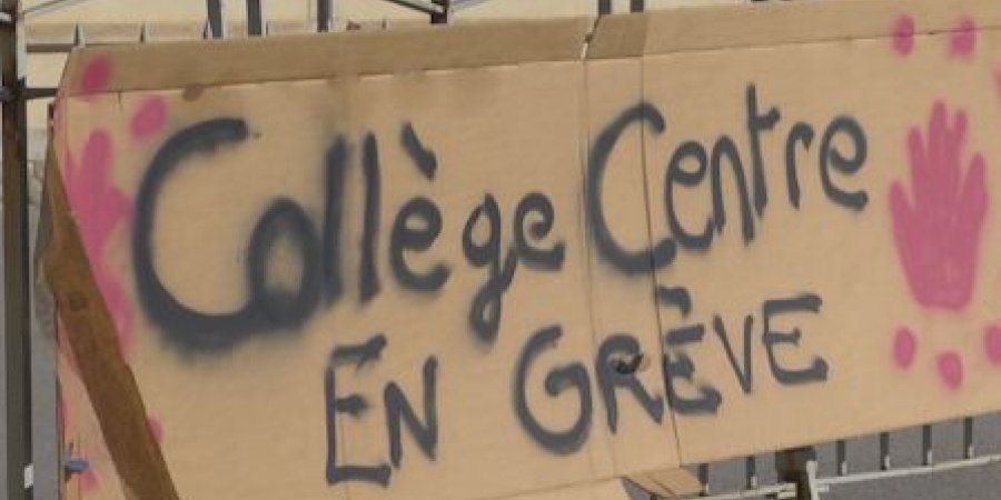 Des fissures dans les plafonds, des flaques d'eau dans les couloirs, du matériel vétuste et des problèmes de chauffage, le corps enseignant du collège Centre à Gap dit "stop" et s'est mis en grève ce mardi matin, place Verdun. Julie Cabannes, professeur d'histoire et de géographie, a fait connaître son mécontentement :