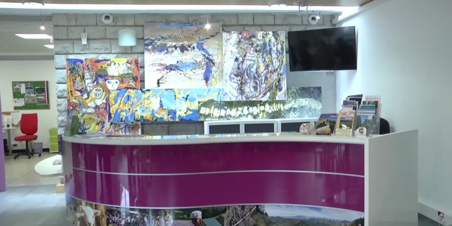 Ce samedi, une fresque géante est arrivée dans les nouveaux locaux de l'office de tourisme du Sisteronais-Buëch. Elle a été réalisée par cinq artistes : Jean-Jacques Ligot, Jean-Pierre Marimot, Jean-Cristophe Lelievre, Colin Zmirou et Nathalie Couyere qui font partie de l'association Sist'Arts. Cette association regroupe une quinzaine d'artistes sisteronais qui n'ont pas de galerie et exposent dans le local associatif. Cette toile géante a été créée à la demande des employés de l'office de tourisme qui trouvaient les murs trop fades après le récent emménagement et voulaient une œuvre originale. Sylvain Poncet, membre du Conseil d'administration de l'association, nous en dit plus sur les détails de cette fresque :