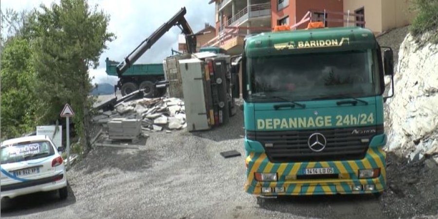 Les images sont impressionnantes. Un énorme camion s'est couché sur la chaussée de la commune de Chorges. Le véhicule transportait du matériel. Il était stationné au niveau du camping l'Écrin du Lac, en direction du Col Lebraut. La charge était probablement trop lourde et lors de la manoeuvre pour décharger le matériel, le camion s'est couché. Une dépanneuse s'est rendue sur place. Pas de blessé mais une sacrée frayeur.