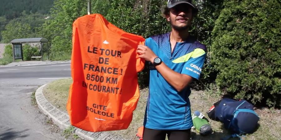 Icham AKAB court depuis le 23 janvier pour un tour de France en solitaire, sans assistance et sans sponsor. Son autonomie a un poids : 13 kilos qu’il porte sur son dos 40 à 60 kilomètres par jour selon les difficultés rencontrées. Ce lundi, il est passé par Briançon, ne s’arrêtant au bord de la route que pour nous raconter sa passion avant de se diriger vers le col du Galibier et de basculer vers la Savoie.