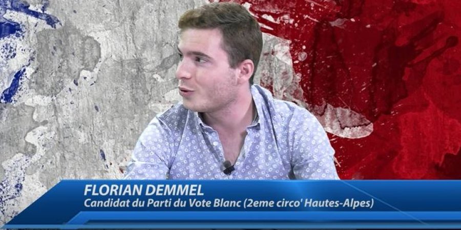 "Pour que le vote blanc soit reconnu". Voilà pourquoi Florian Demmel est candidat dans les Hautes-Alpes. Ce Varois de 22 ans, qui suit des études à Grenoble, vise la deuxième circonscription des Hautes-Alpes parce que c'est un habitué de la station des Orres. Puis, il a un combat à mener. Membre du Parti du Vote Blanc depuis plusieurs années, Florian Demmel souhaite que les élus en place "prennent conscience du désamour et du manque de représentativité ressentis par de plus en plus d'électeurs". En clair, tous ceux qui votent blanc doivent être entendus :