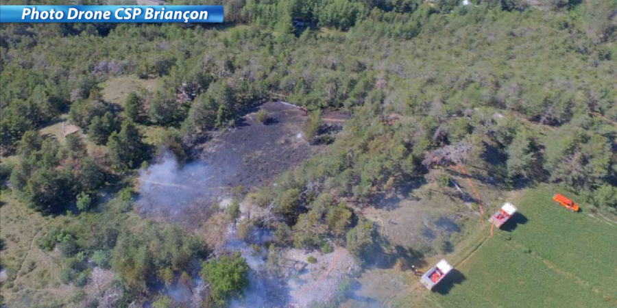 Le feu a ravagé une parcelle de forêt au-dessus de Briançon, à proximité d'une maison d'enfants à Villard-Saint-Pancrace ce samedi vers 17h. D'importants moyens ont été dépêchés sur place afin d'éviter toute propagation du feu favorisé par le vent et la chaleur. Le commando feu de forêt était assisté par un drone permettant d'avoir une vue d'ensemble et de guider les personnels au sol. Roanne Faget, chef de groupe sur l'intervention :