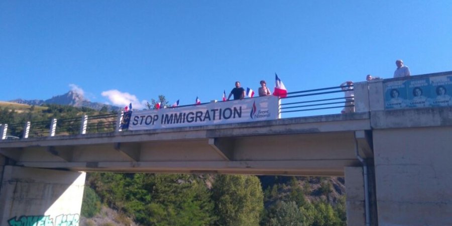 Action coup de poing du Front National ce vendredi matin dans les Hautes-Alpes. A l'occasion du 14 juillet, une délégation du département a déroulé une immense banderole sur le pont de Prunières, entre Chorges et Savines le Lac, sur la RN 94. On peut y lire : "Stop Immigration". Leur message, visible par de nombreux automobilistes, ne peut pas être plus clair.