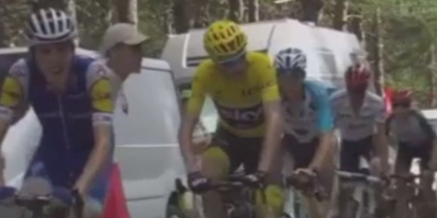 C'est tout ce que l'on déteste voir dans le sport. Durant l'étape entre Briançon et le Col d'Izoard de jeudi, le maillot jaune Chris Froome a, semble-t-il, été victime d'un crachat de la part d'un spectateur. Selon les images reprises par le site Sportschau, on peut en effet voir que le champion de la Sky reçoit un projectile en plein visage alors qu'il monte le col d'Izoard. Tout simplement honteux. Regardez :
