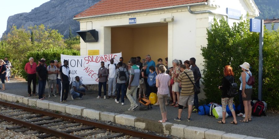 Ce mercredi matin, huit migrants de Sisteron originaires du Soudan, du Tchad et d'Afghanistan ont été transférés en train du CAO de Sisteron au PRADHDA de Vitrolles... Un transfert contre leur gré contre lequel se sont rassemblés les membres du Collectif de Solidarité avec les Réfugiés de Sisteron qui dénoncent l'arbitraire de ces transferts imposés et l' « indignité » de la procédure Dublin. Jean-François Priefter :